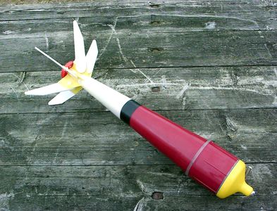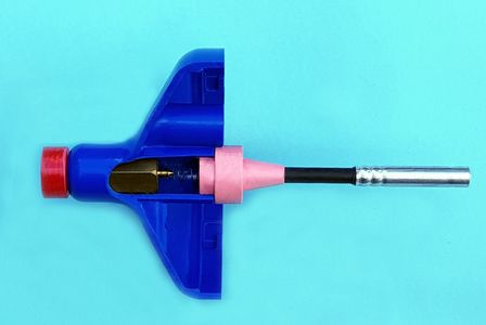 Hand Charge, Gas Gun and Helibombing configurations described in the next web page. The Photograph shows Gas Gun projectile being prepared for firing in a Nitrogen gas launcher (Avalauncher).